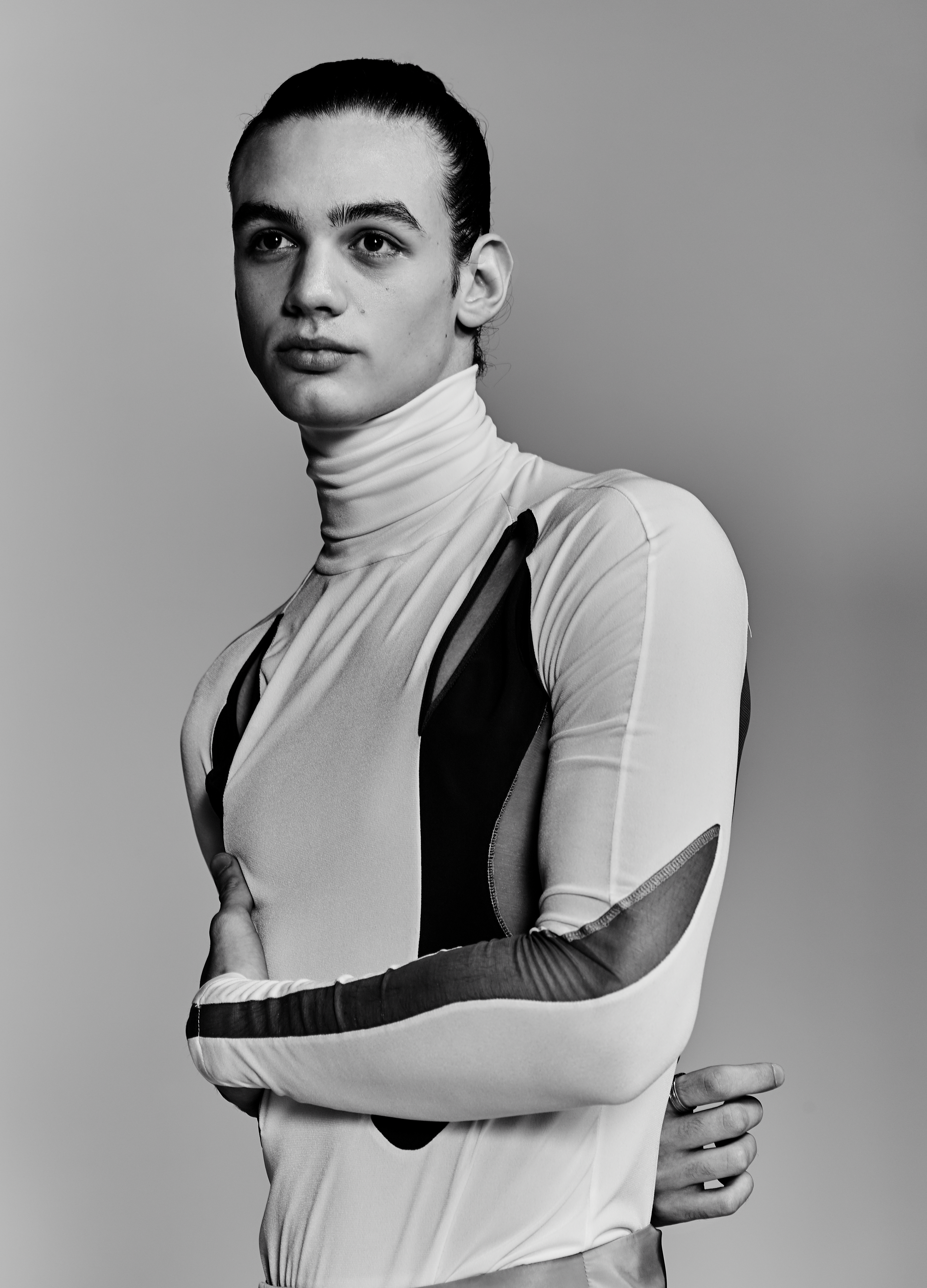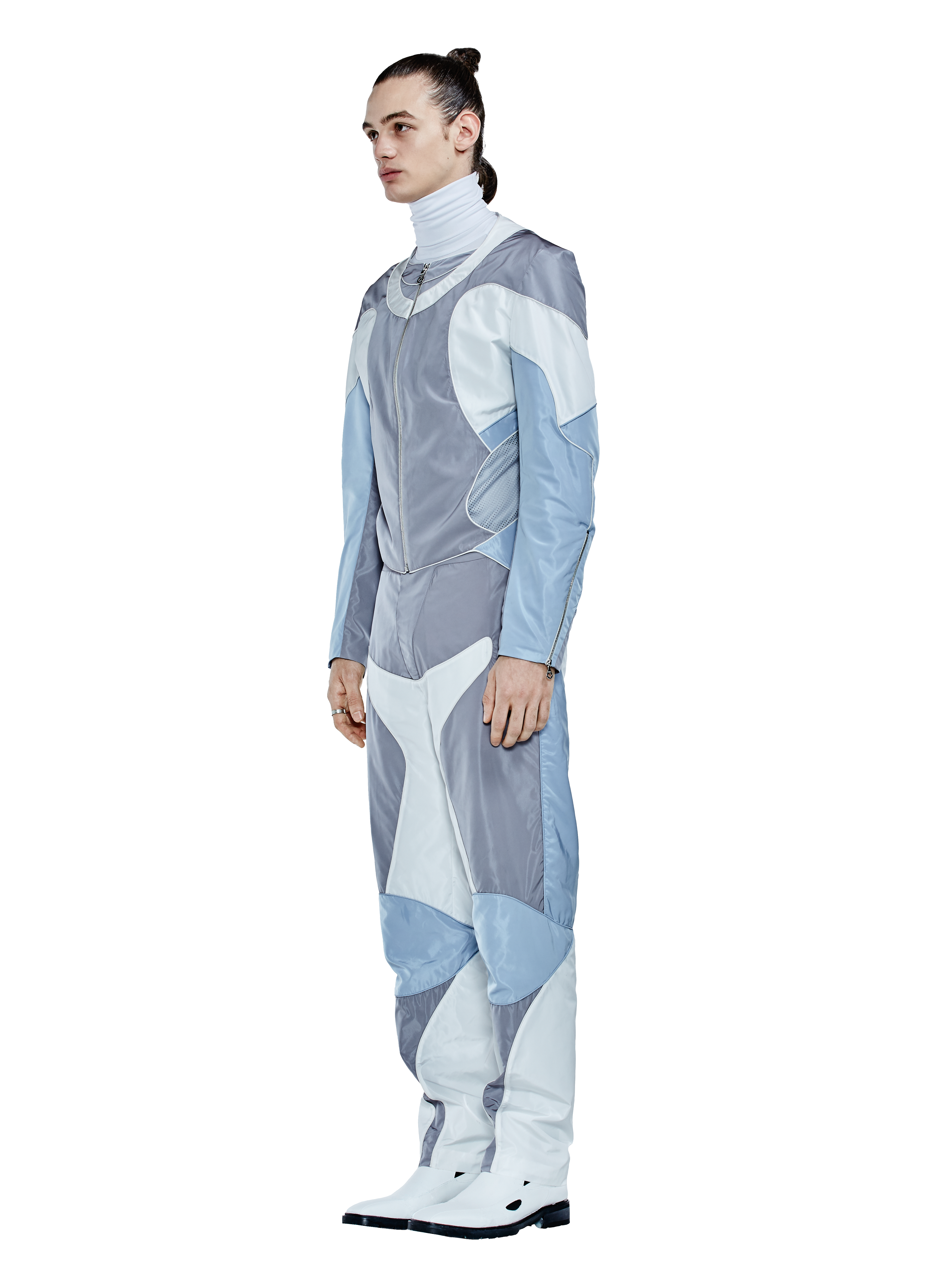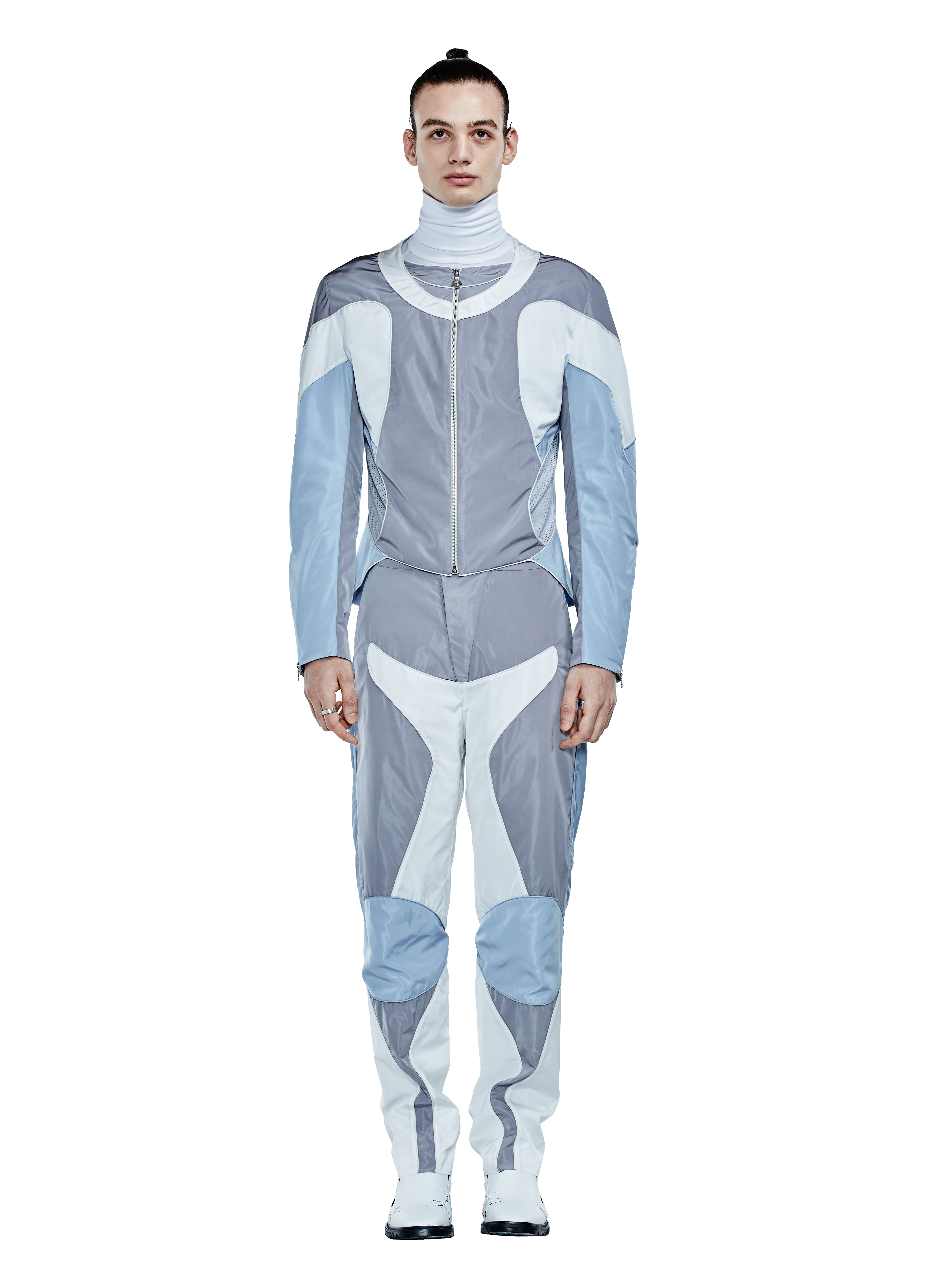 The collection reflects on experiences of street protest and protection through the medium of camouflage clothing in a post-humanist context. The colour palate relates to established terrain but also suggests that the city is our newest battlefield. Analysis of archetypes in protective clothing form the foundation of reference that is then enhanced by volumetric cutting to emphasise the body in colour-based panelling.