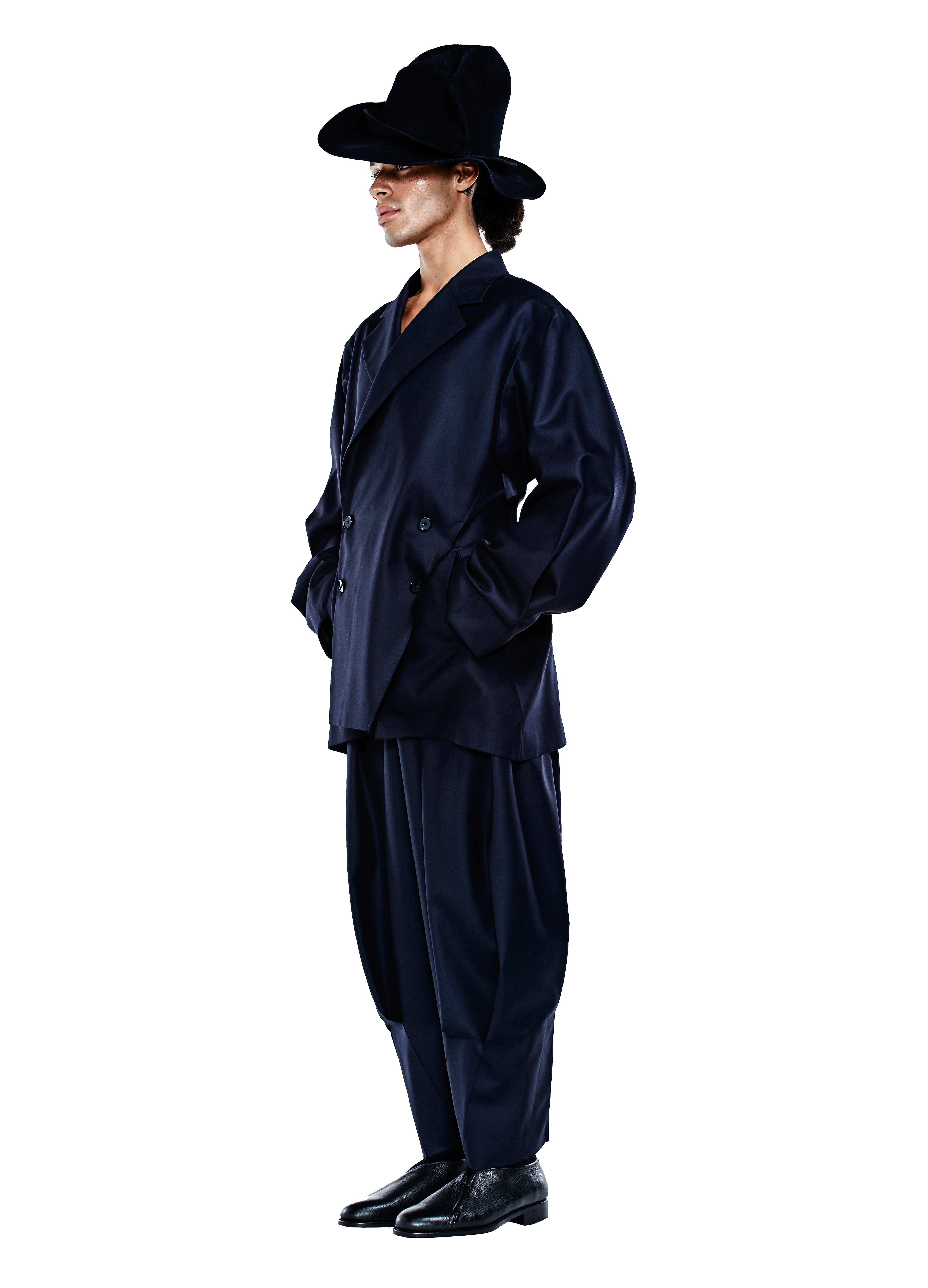 The project investigates the restrictions of traditional cutting methods and the potential for innovation by developing a process of freehand 'collage' pattern cutting and construction. This way of thinking encourages three-dimensional spatial awareness of design as a process. The making includes a reduction of waste which was achieved by active lay planning processes related to the freehand cut and a combination of the raw and established finishes used in tailoring.
