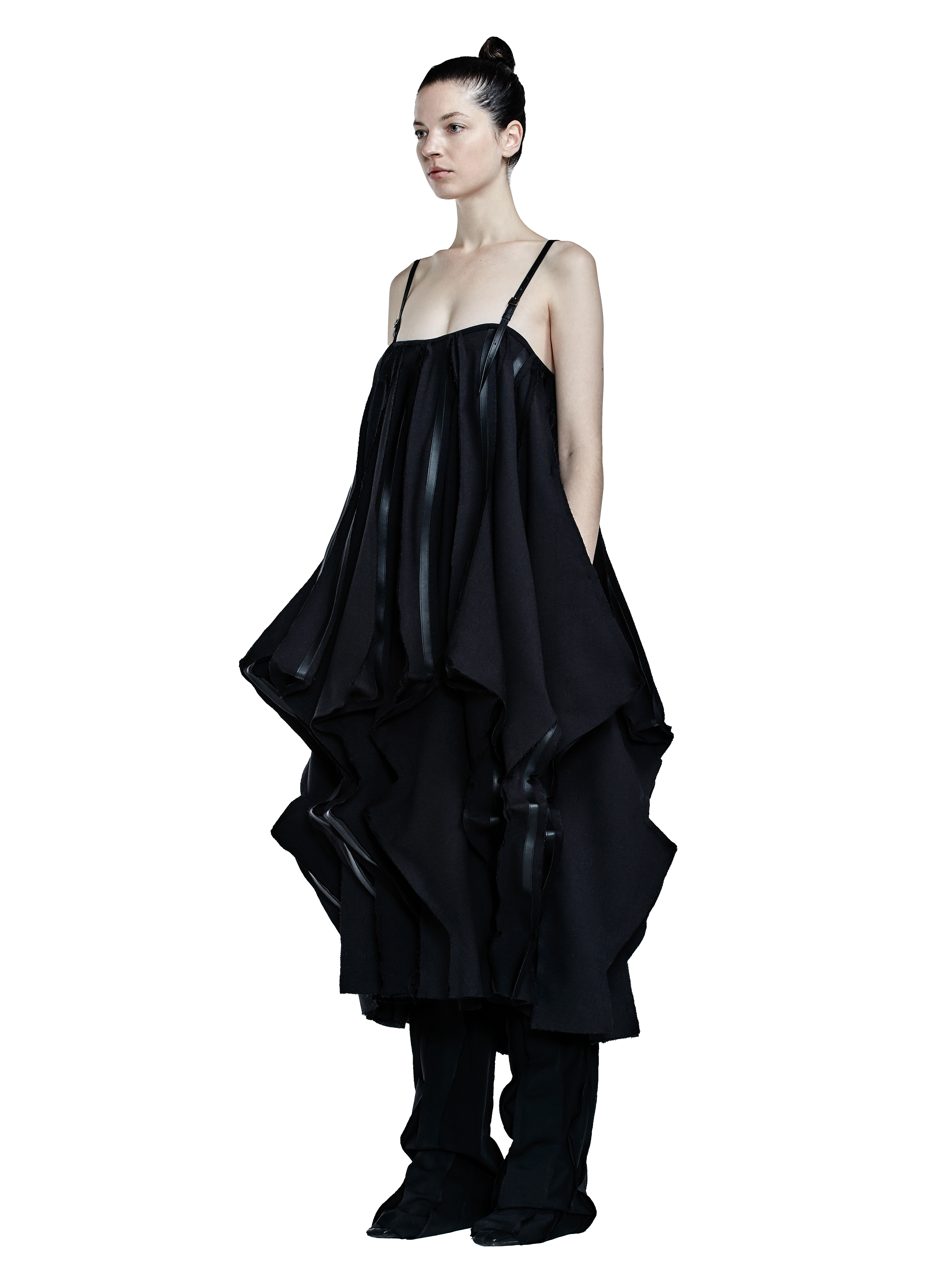 I am research focused and build garments through integrated with home design ,trying to capture the spatial appearance and atmosphere in my memory.Utility, minimalism and feminine; three words throughout my collection ,also the key of my design aesthetic