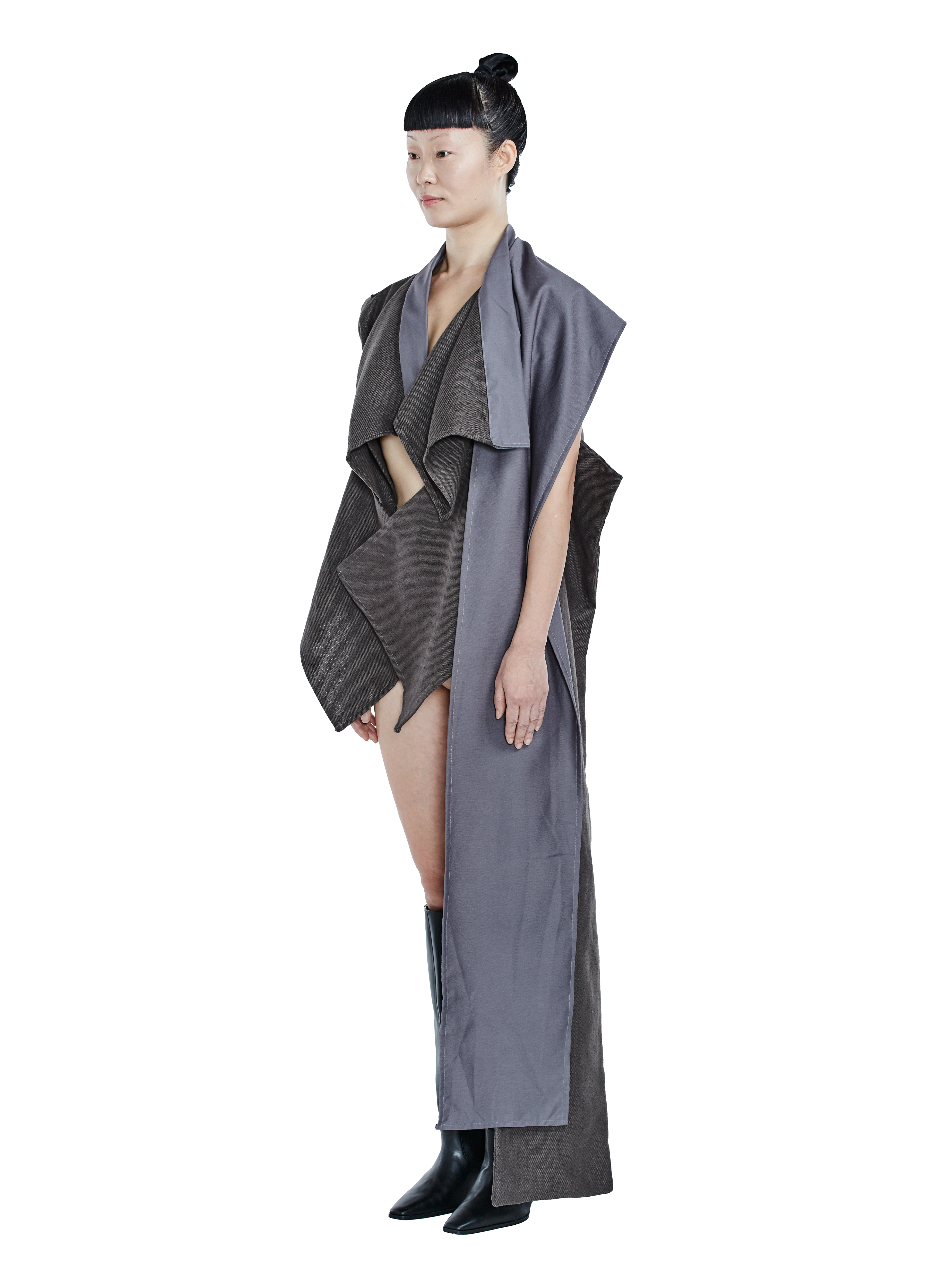A freelance fashion designer and pattern cutter based in the UK, having just completed her MA in Pattern and Garment Technology. She is continually researching minimal waste and wardrobe longevity for a more sustainable future. Her collections include strong geometric cuts and silhouettes, focusing on the versatility of traditional construction and tailoring. Wearers are encouraged to interact and personally style the silhouettes, using the term "Multiways".